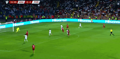 第21分钟,内托传中,C罗门前抢点破门,葡萄牙2-0亚美尼亚