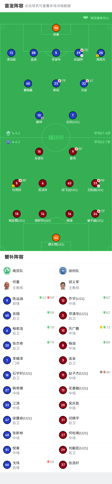 第59分钟,南京换人调整,吉翔,戈伟替补上场